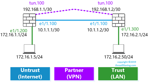 set zone PARTNER-VPN network layer3 tunnel.100