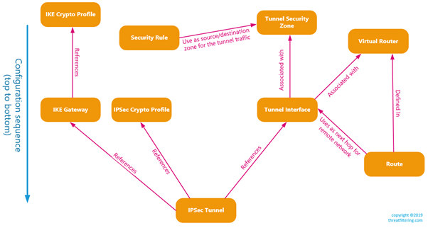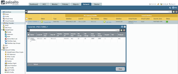 Palo Alto Networks firewalls provide site-to-site and remote access VPN functionality. This article covers overview and configuration of IPSec site-to-site tunnels which are compatible with equipment from other vendors.