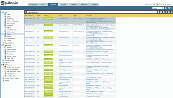 ) is populated with events as tunnel is getting established. To filter out VPN-only events filter the output using the filter shown in the next screenshot ( subtype eq vpn )